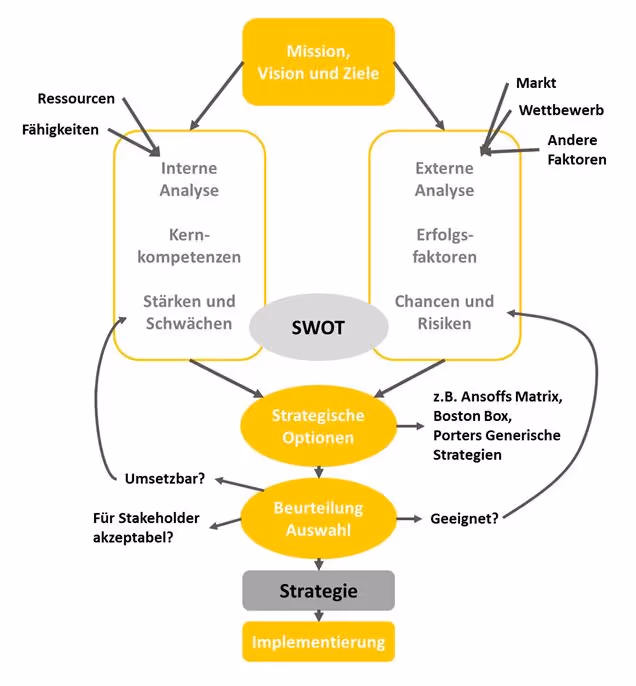 Dieser Standardansatz geht davon aus, dass Strategien auf der Basis der unternehmerischen Vision, Mission und Ziele entwickelt werden und zu deren Erreichung führen sollen.